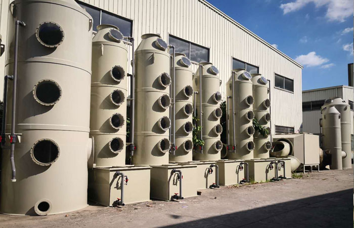 噴淋塔?又稱(chēng)為水洗塔、洗滌塔、凈化塔;按性質(zhì)分為酸性洗滌塔、堿性洗滌塔;按形狀也可分為立式洗滌塔、臥式洗滌塔;按材質(zhì)又為分洗滌塔、玻璃鋼洗滌塔等。